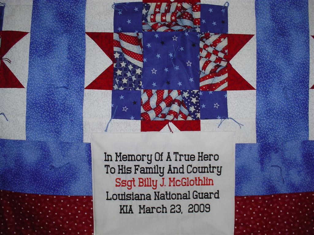 Staff Sgt. Billy J McGlothlin March 23, 2009 Freedom Quilts Heroes This quilt was made by Freedom Quilts for his family in Honor of Billy J McGlothlin.