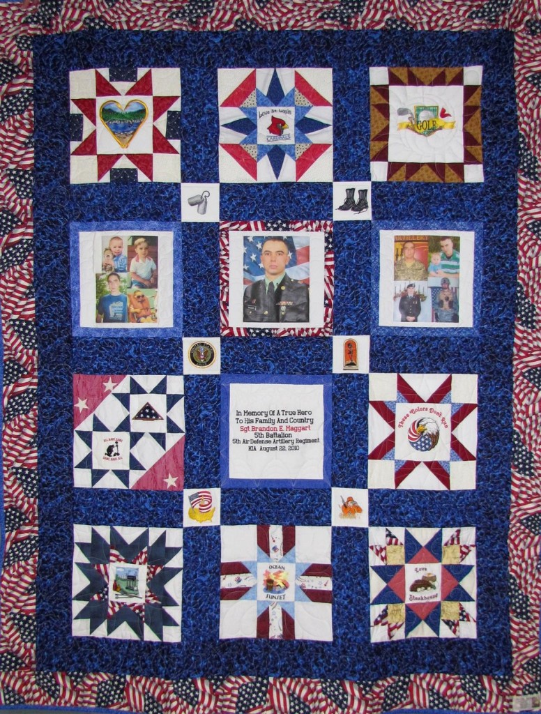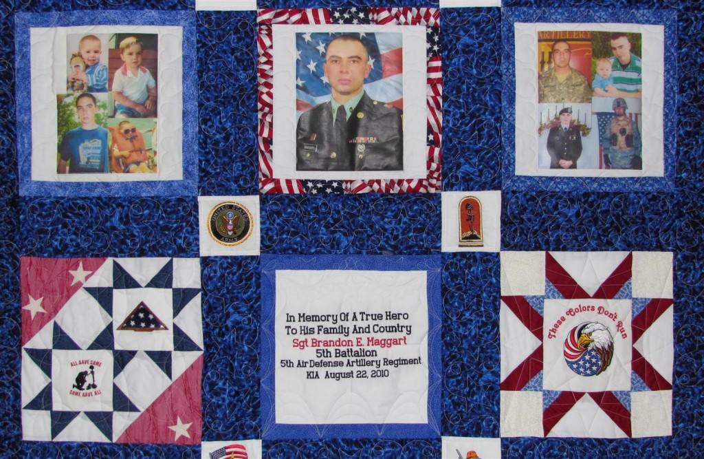 This quilt was made by Freedom Quilts for his family in honor of Army Sgt. Brandon E. Maggart.