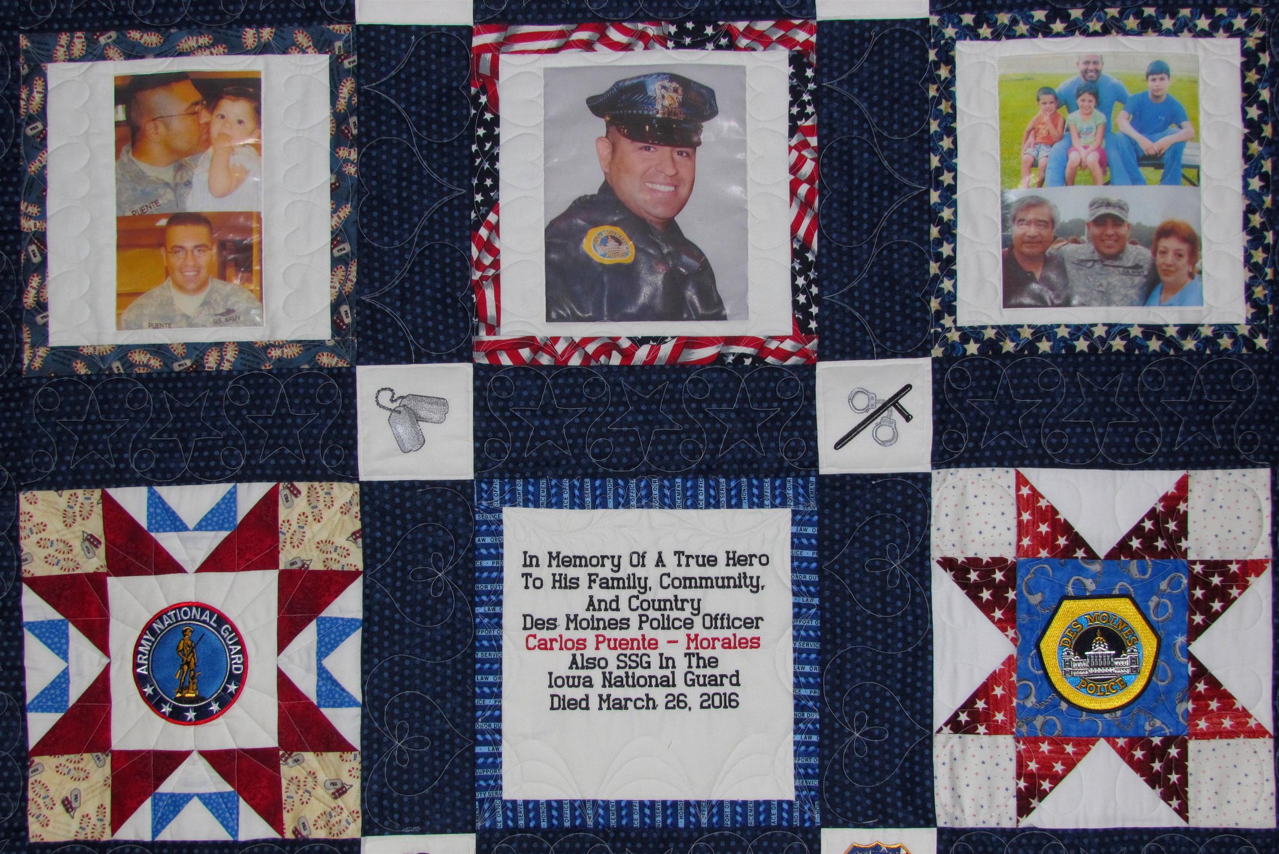 Carlos Puente-Morales a Des Moines police officer died March 25 2016 while transporting a prisoner to Des Moines from Council Bluffs in a head-on collision on Interstate 80 near Waukee.