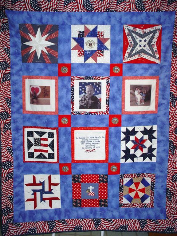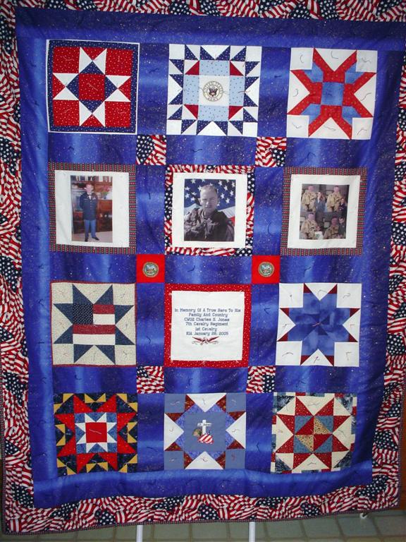 These quilts were made by Freedom Quilts for his family in honor of Chief Warrant Officer 2 Charles S. Jones.