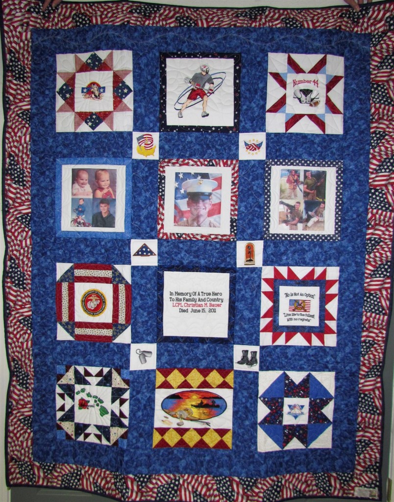 This quilt was made by his family by Freedom Quilts in honor of Christian M Bauer.