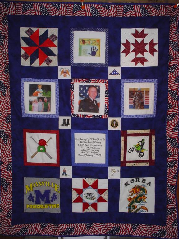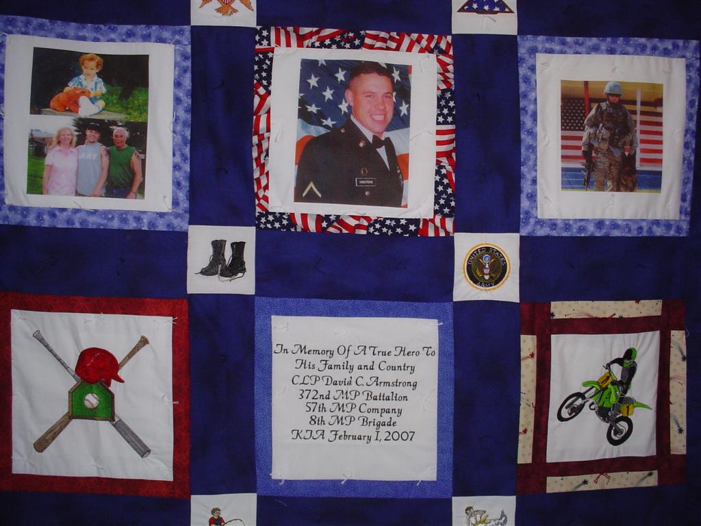 This quilt was made by Freedom Quilts for his family in Honor of David C. Armstrong.