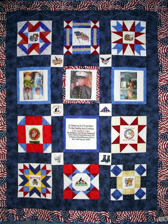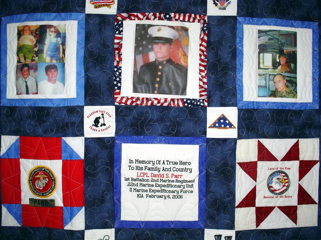 Freedom Quilts made this quilt for his family in honor of Marine Lance Cpl. David S. Parr.