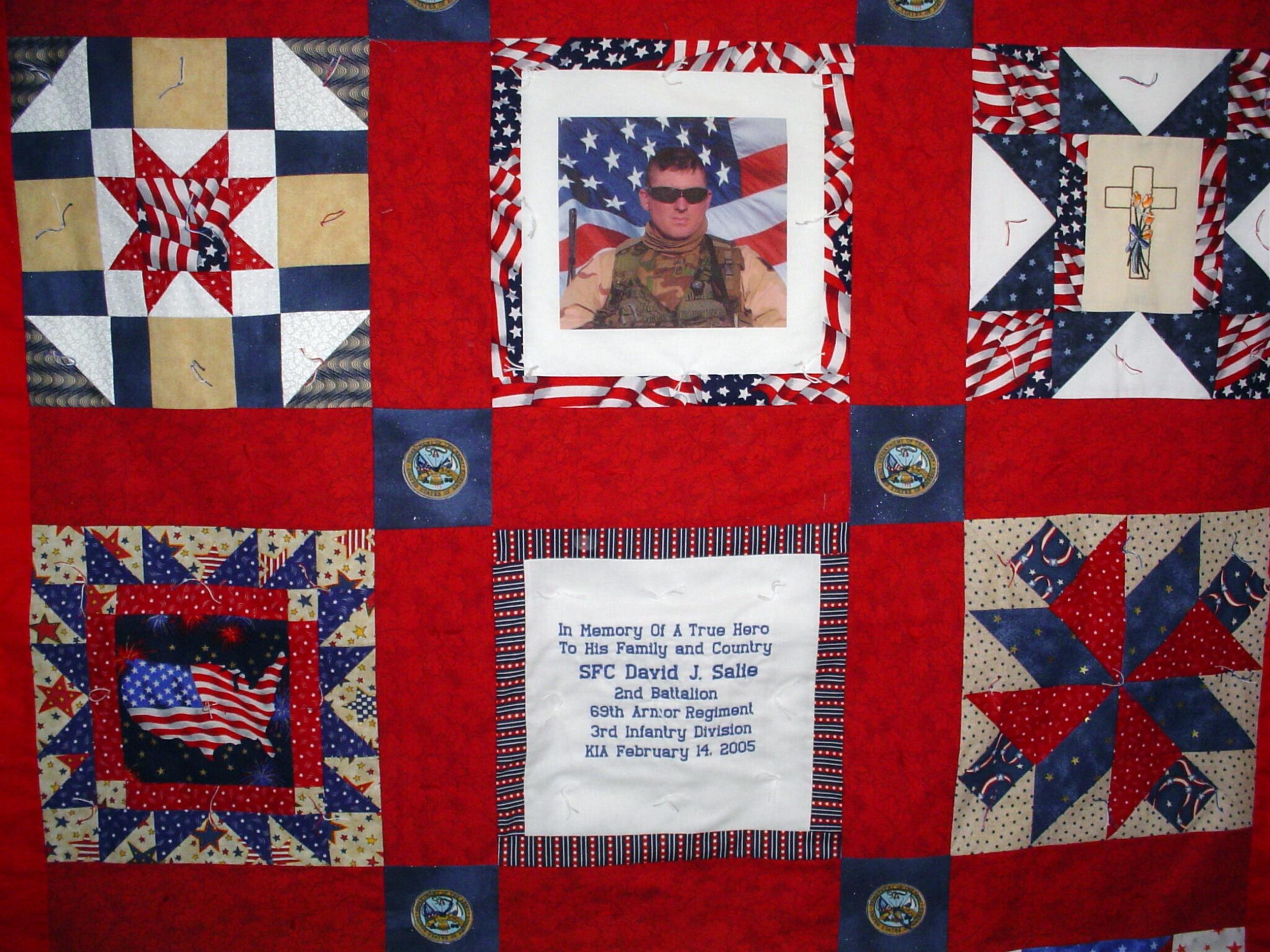 This quilt was made by Freedom Quilts for his family in honor of Sgt. 1st Class David J. Salie.