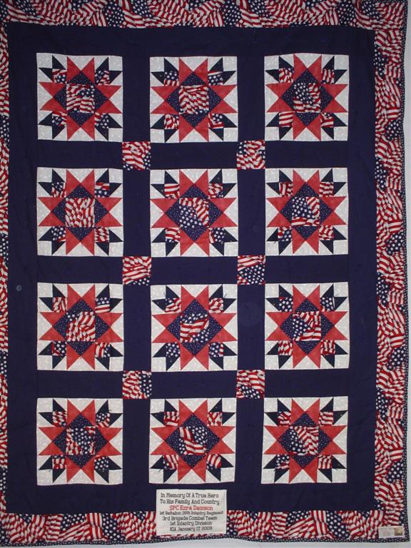 This quilt was made by Freedom Quilts for his family in Honor of Ezra Dawson.