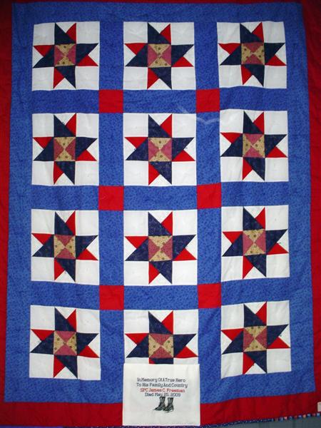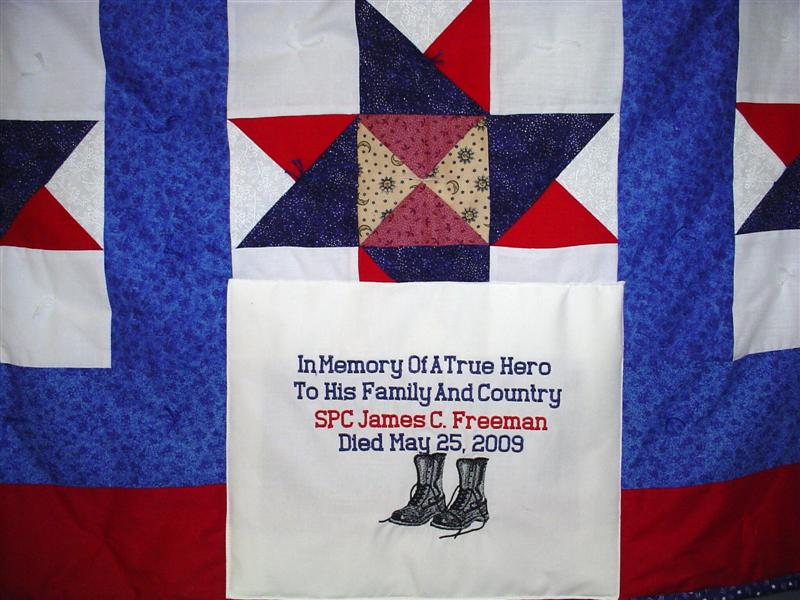 This quilt was made by Freedom Quilts for his family in Honor of James C Freeman.