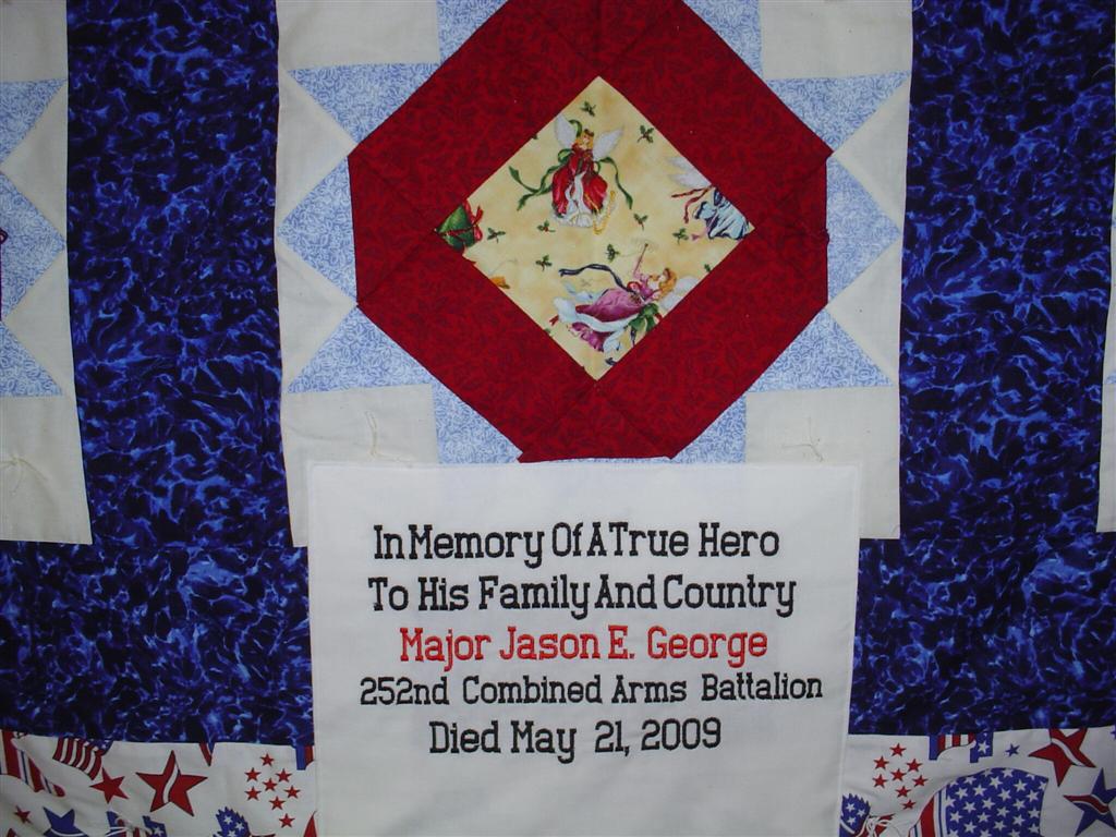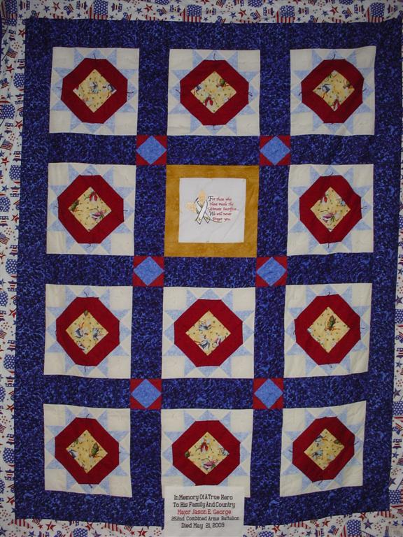 This quilt was made by Freedom Quilts for his family in Honor of Jason E. George.