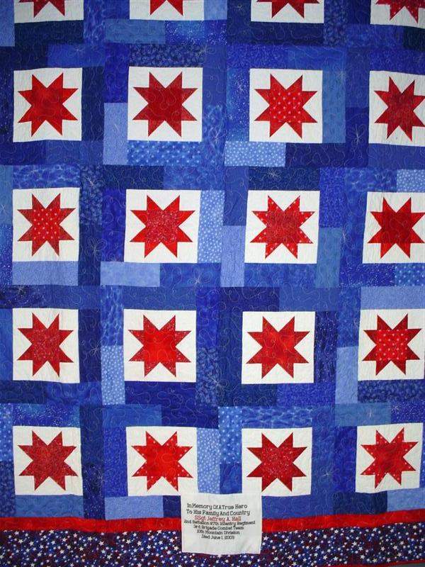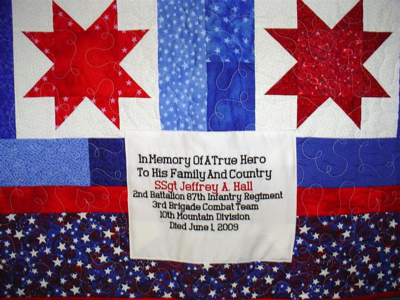 This quilt was made by Freedom Quilts for his family in Honor of Jeffrey Alan Hall.