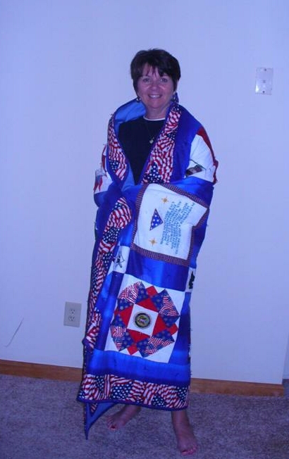 How do I find the words of expression. I received my quilt, and upon opening the box I was in awe. You have truly been blessed with an honorable talent. You captured my husband, in every patch, and I know you have love in every stitch. I am so very happy with it. My friends have heard about it already, and cannot wait to see it.