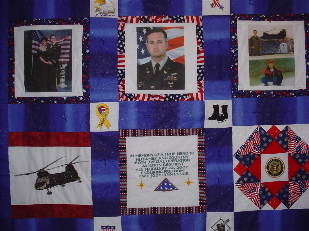 This quilt was made by Freedom Quilts for his family in honor of CW2 Jody L. Egnor.