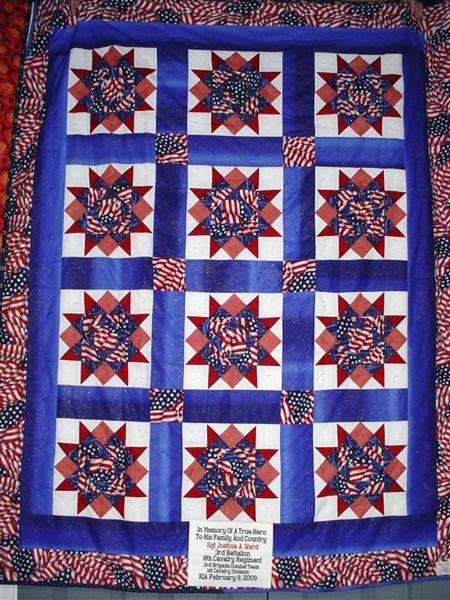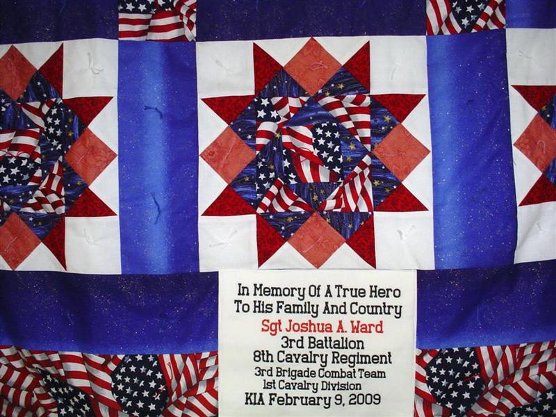 This quilt was made by Freedom Quilts for his family in Honor of Sgt. Joshua A. Ward.