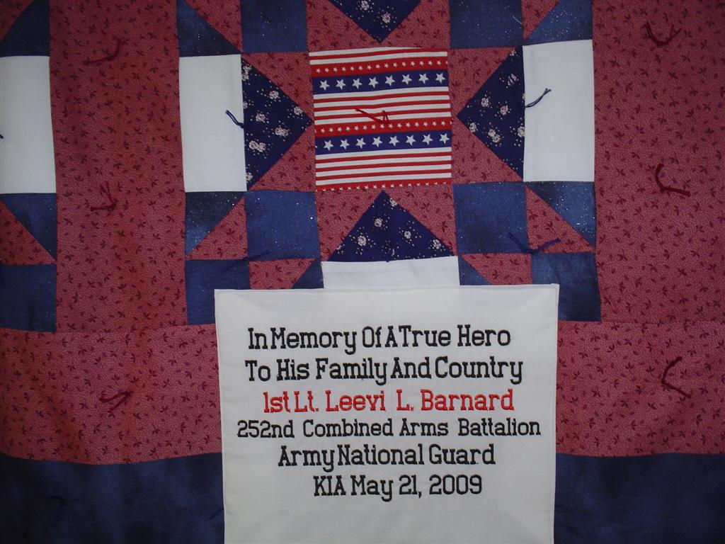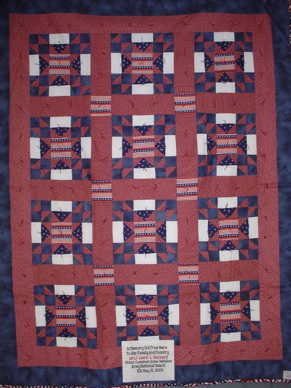 This quilt was made by Freedom Quilts for his family in Honor of 1st Lt. Leevi K. Barnard.