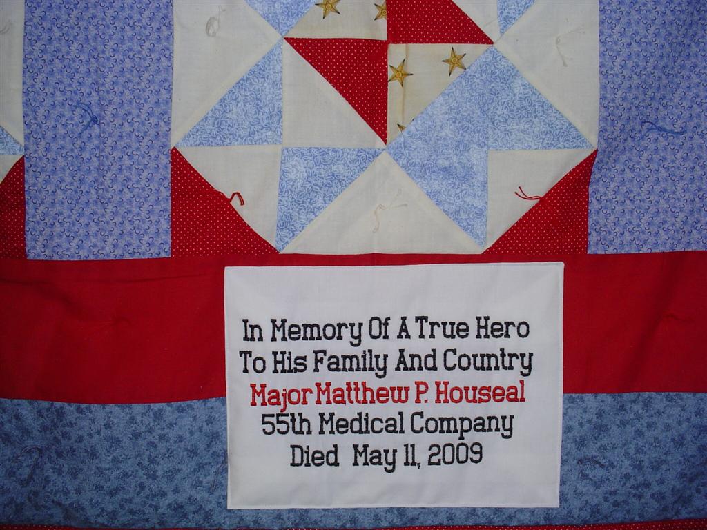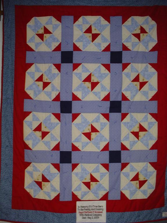 This quilt was made by Freedom Quilts for his family in Honor of Matthew P. Houseal.