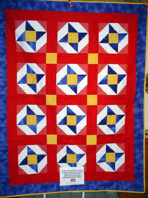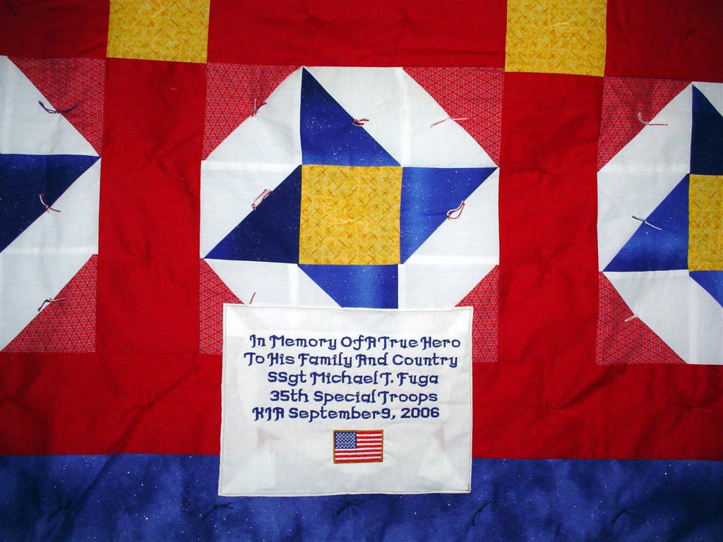This quilt was made by Freedom Quilts for his family in honor of Sgt. 1st Class Michael T. Fuga.