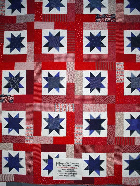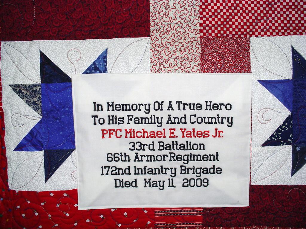 This quilt was made by Freedom Quilts for his family in Honor of Michael E. Yates Jr.