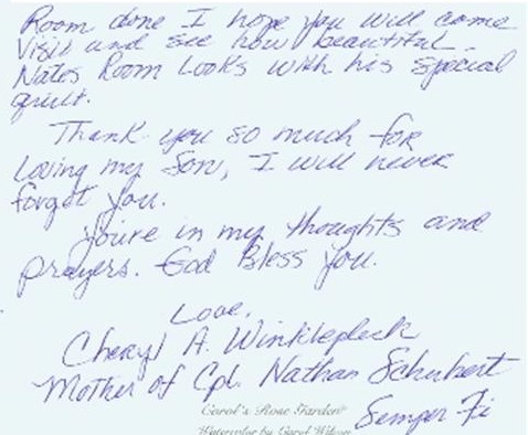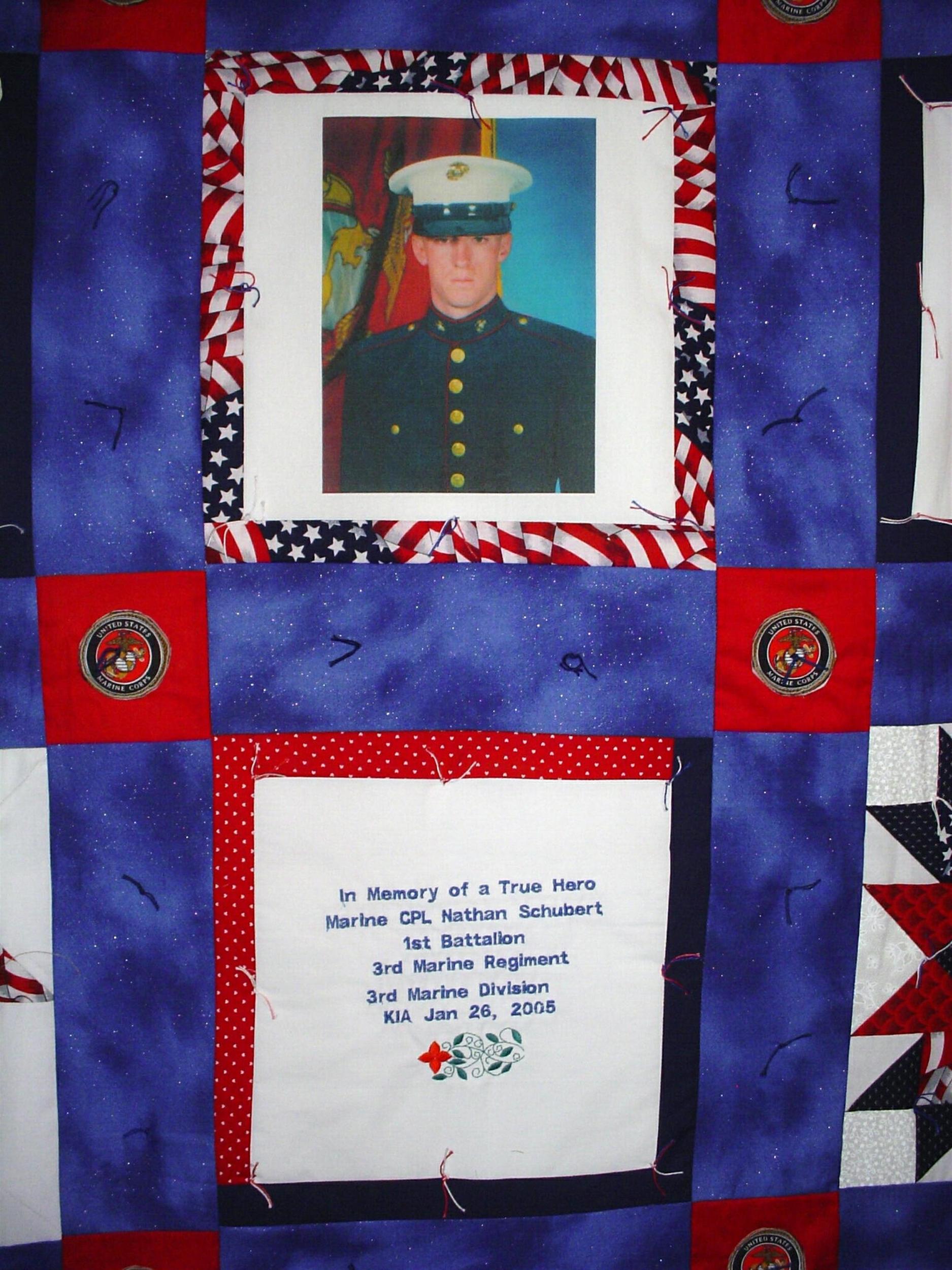 Marine Cpl. Nathan A. Schubert 22, of Cherokee, Iowa. Schubert died when the CH-53E helicopter he was in crashed near Ar Rutbah, Iraq. He was assigned to 1st Battalion, 3rd Marine Regiment, 3rd Marine Division, III Marine Expeditionary Force, Marine Corps Base Hawaii. He died on January 26, 2005.