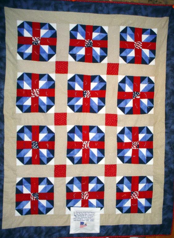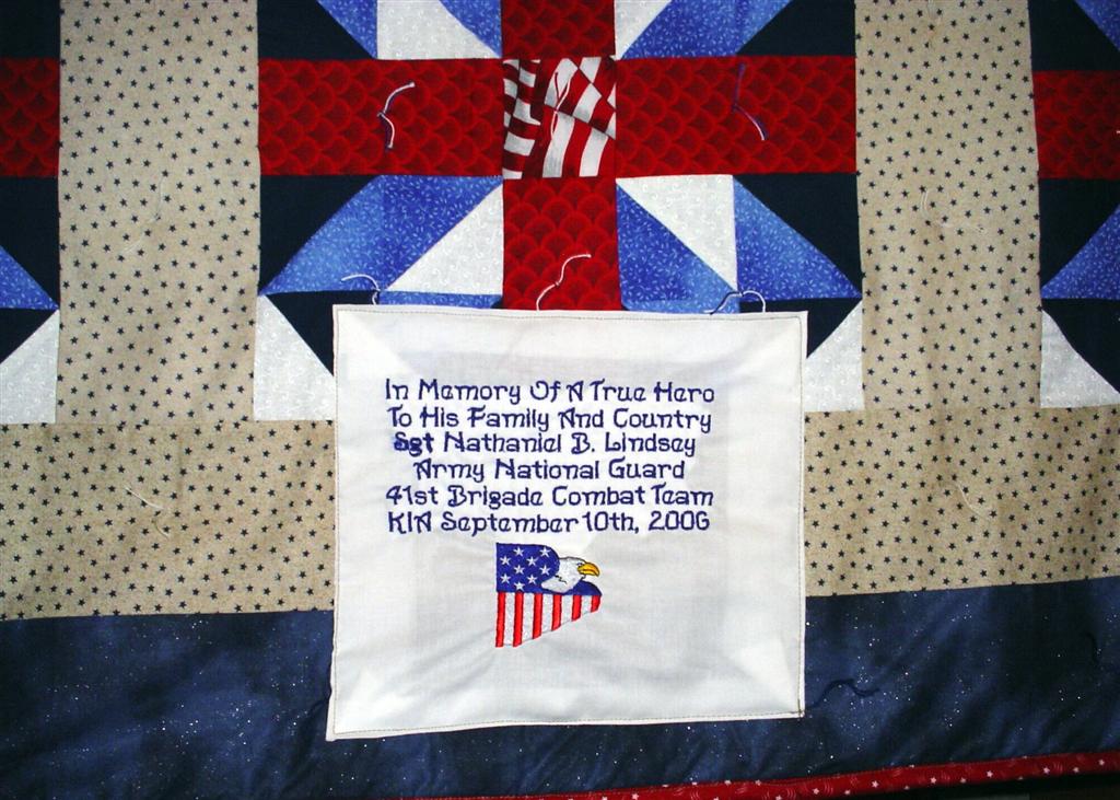 This quilt was made by Freedom Quilts for his family in honor of Nathaniel B. Lindsey.