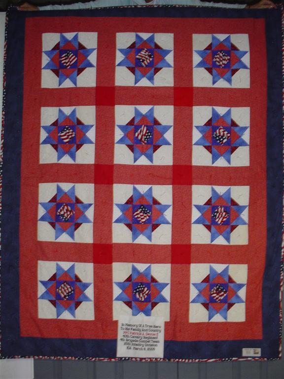 This quilt was made by Freedom Quilts for his family in Honor of Pfc. Patrick A. Devoe III.