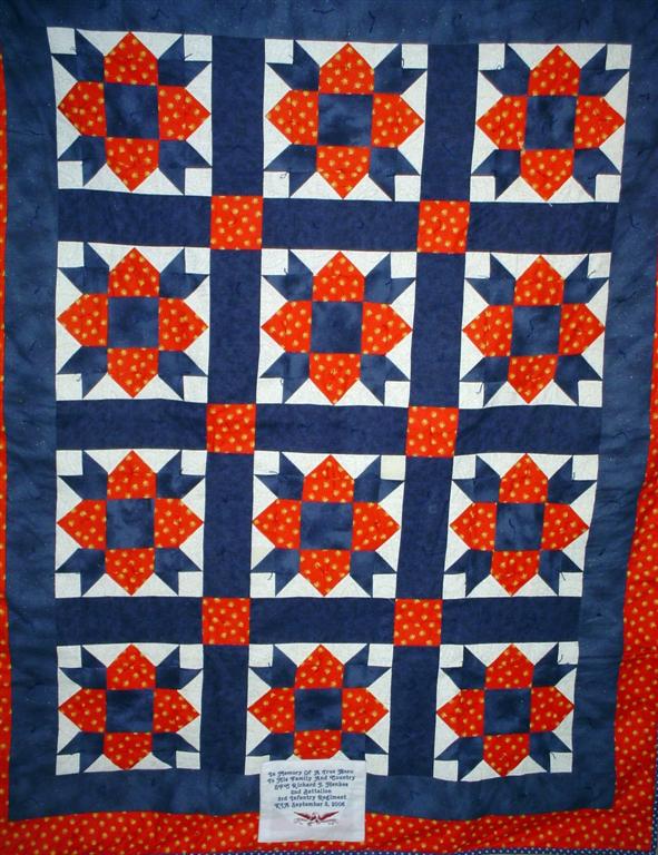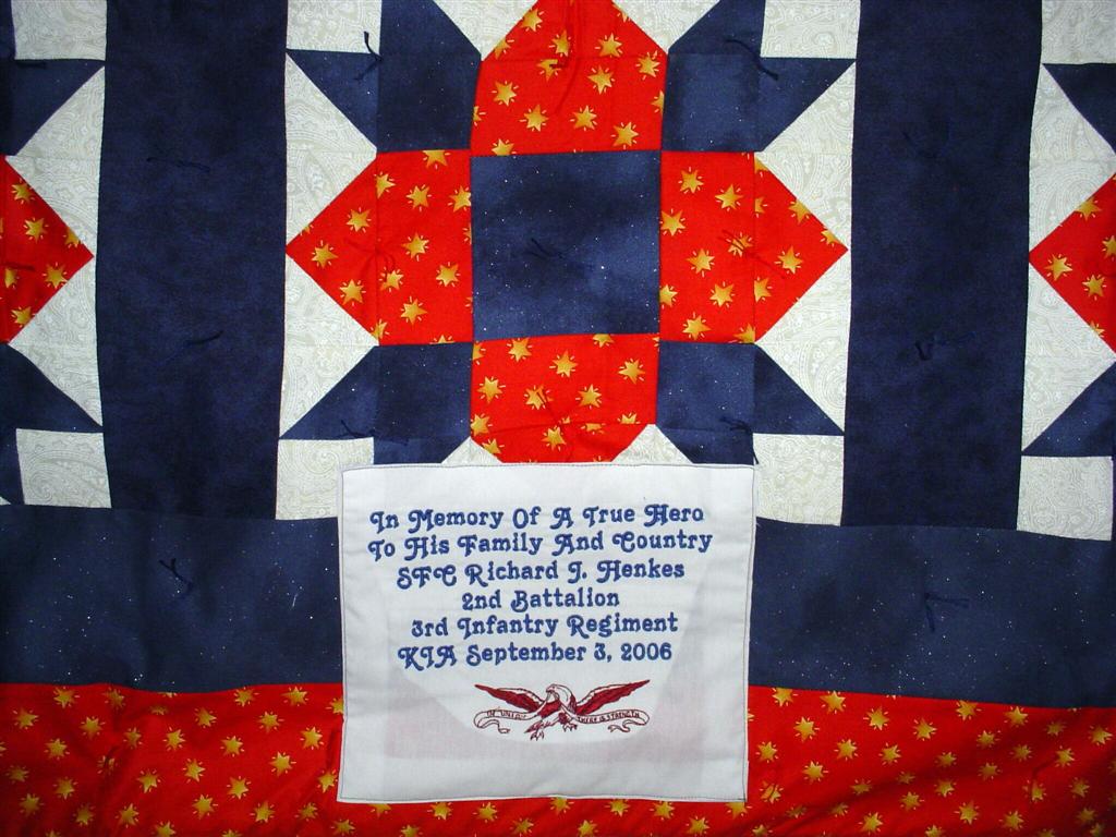 This quilt was made by Freedom Quilts for his family in Honor of Richard J. Henkes II.