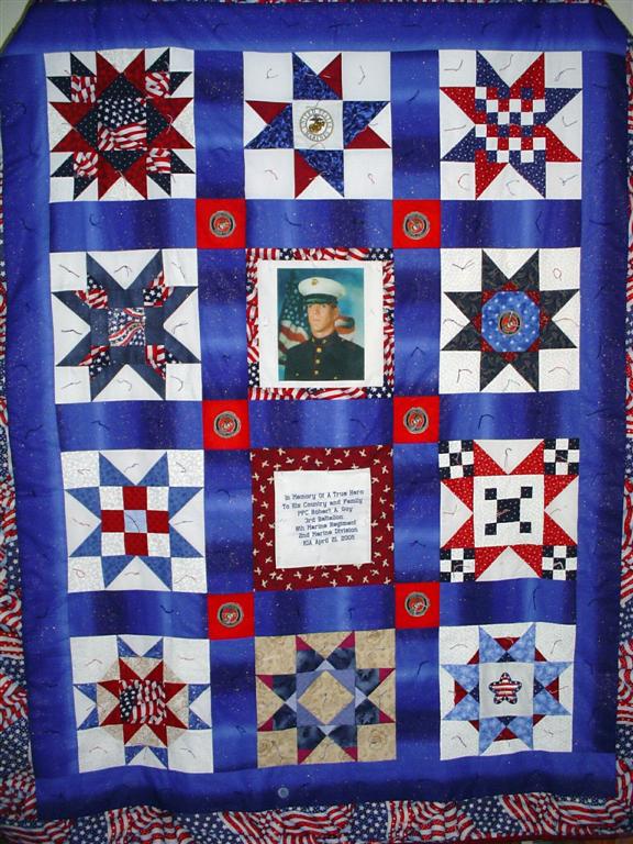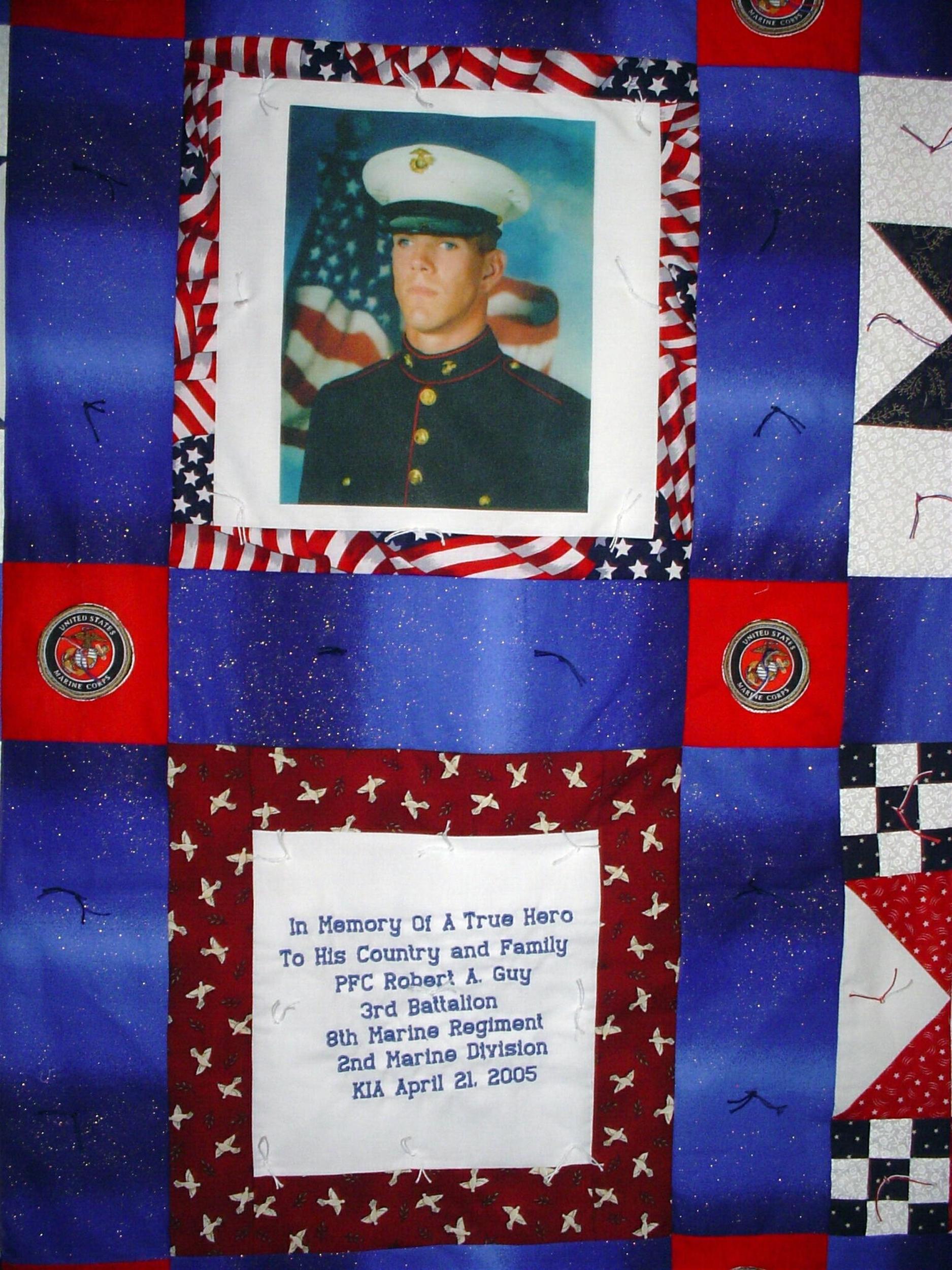 Freedom Quilts made this quilt to honor Marine Pfc. Robert A. Guy for his mother Ann.