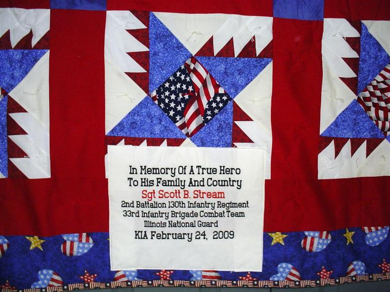 This quilt was made by Freedom Quilts for his family in Honor of Sgt. Scott B. Stream.