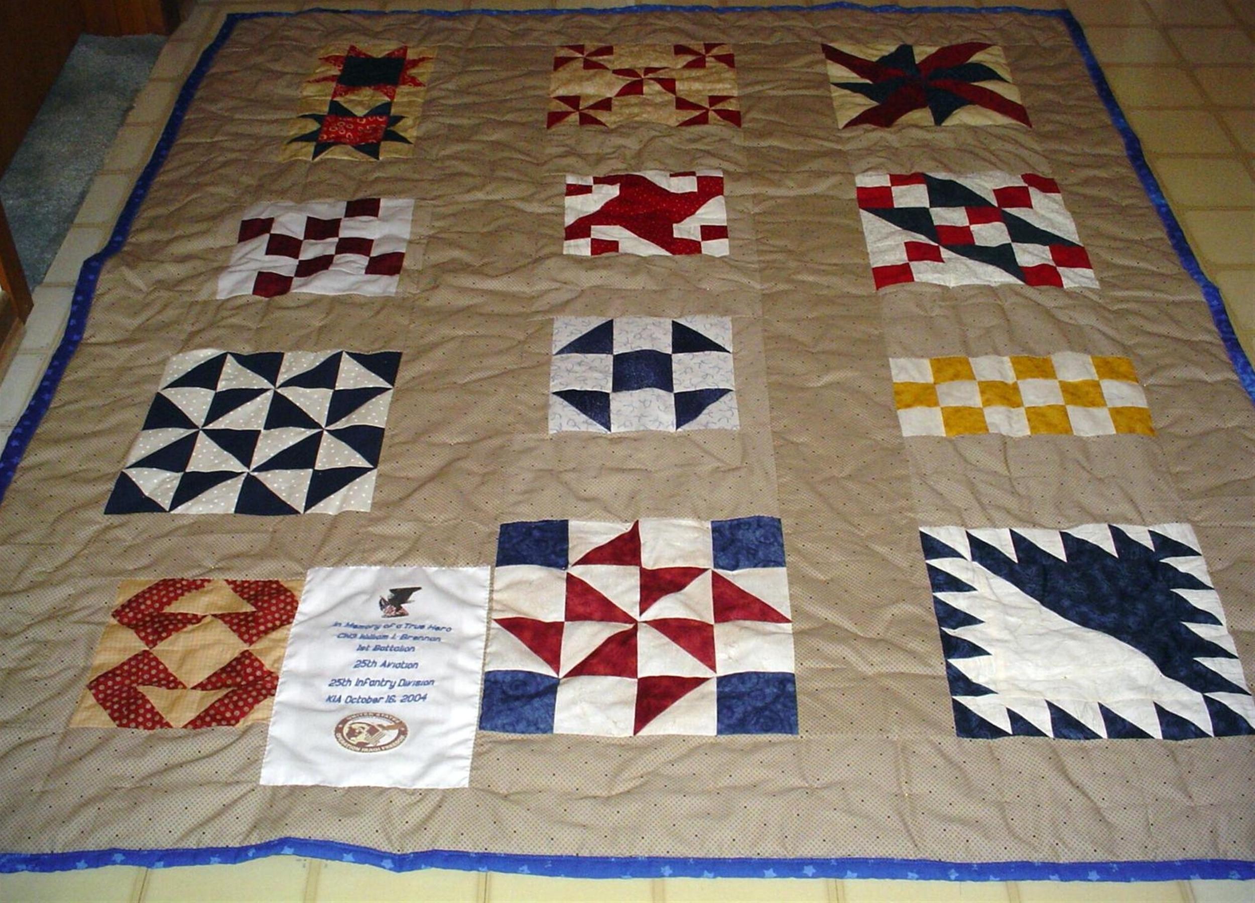 Thank you so much for the beautiful quilts. It meant so much that someone that we have never met could have so much love and compassion for us. I am terribly sorry that it took me so long to email you back. Things are still a little upside down in my world. My two daughters have not seen the quilts yet, they are both in Connecticut with family. I know once they see the quilts their faces will light up with joy. I am sorry to say that both Williams parents are deceased. I know if they were both alive, they too would appreciate your generosity. Attached is the last picture we took as a family. Once again, “Thank You” for sharing your beautiful quilts with my daughters and I. Once the girls and I settle back in the swing of things I will make sure I send you a picture of us with the quilts.