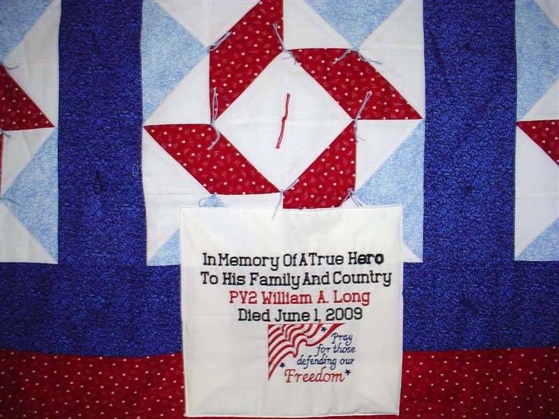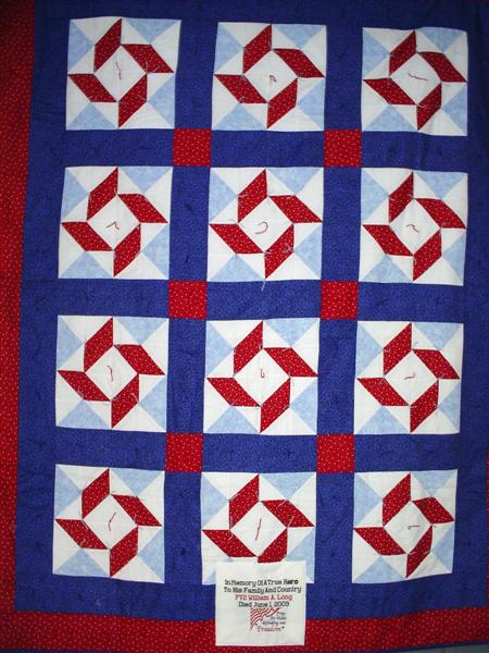 This quilt was made by Freedom Quilts for his family in Honor of William A. Long.